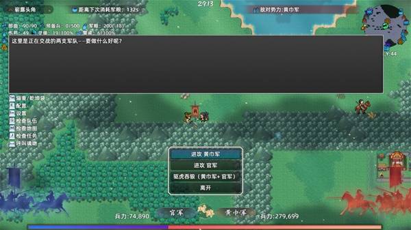 屏幕下方的进度条代表当前两军的优劣势状态,想要提高我方势力,就需要在地图中这种正在交战部队里选择攻击敌方阵营,胜利后就能够提高我军势力条,注意如果选择了其他选项都会让我们开局选择的阵营变成敌对阵营。