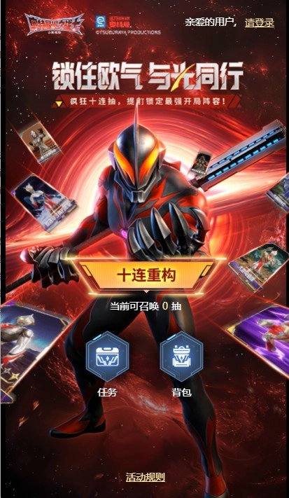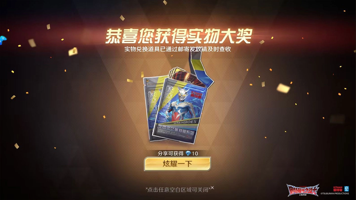 只要参与游戏内指定的重构招募活动,便有机会正版奥特曼盲盒手办或极具收藏价值的奥特曼主题卡包实物奖励;同时,你的每一次十连参与都将积累赐福次数,提升中奖概率,让幸运加倍。