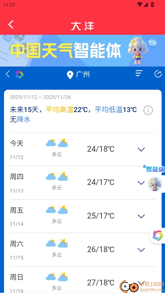 进入天气查询主页后,就能看到未来几天的天气预报信息。