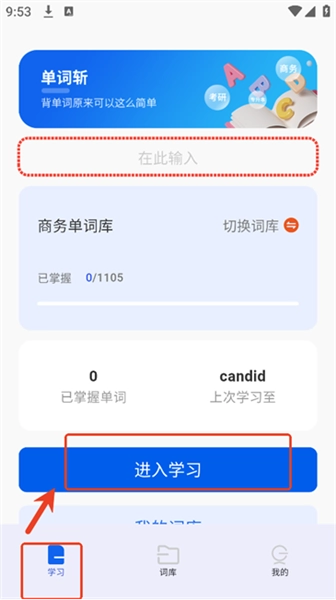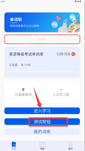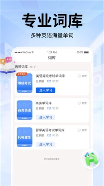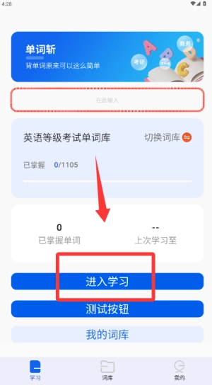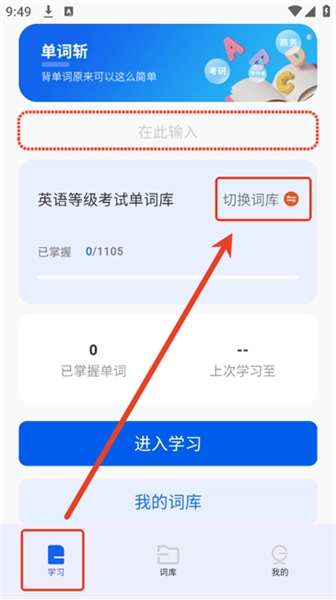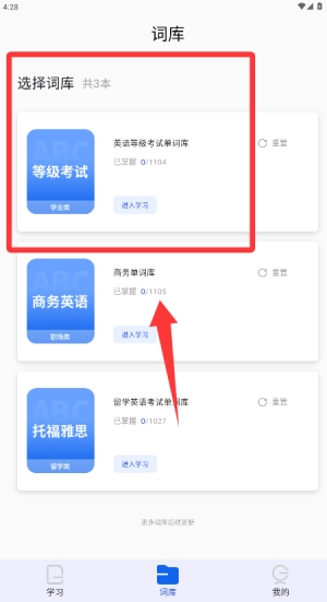 挑选想要学习的单词库,点击“进入学习”按钮就能切换词库