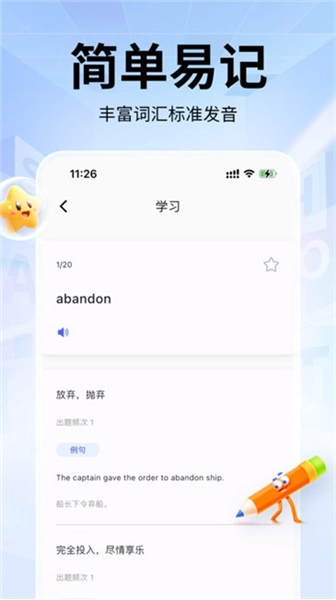 背单词:拥有海量词库资源,单词斩为每个单词配备了简洁好记的释义,助你轻松高效地记忆单词。同时还提供生词理解、听音复习、熟词巩固等实用功能。