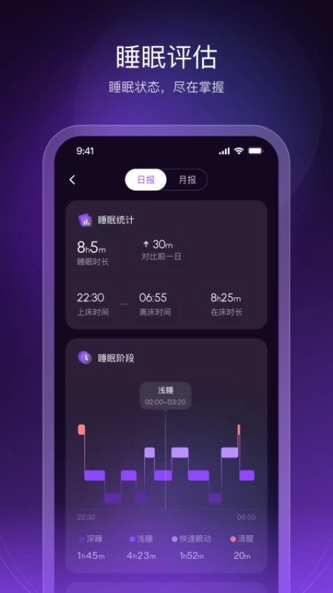 实时监测用户的睡眠状态,使用户能够清晰掌握自身的睡眠情况。