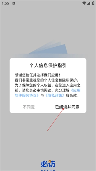 在个人信息保护指引的弹窗里,点击【已阅读并同意】按钮,即可进入应用的主页面。