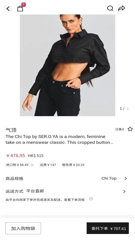 进入商品主页后,点击“加入购物袋”按钮,就能把商品添加到购物车进行管理。
