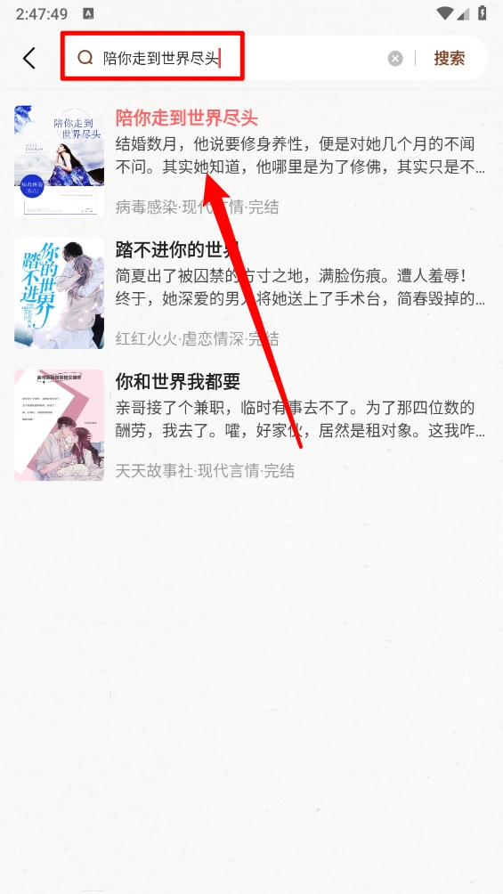 如图,输入书名或关键字直接搜索小说。