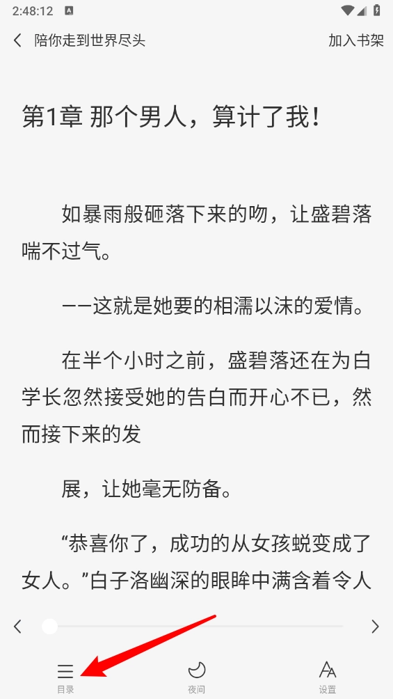 然后进入阅读界面点击左下角"目录"。