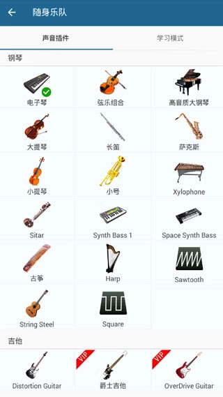 3种吉他音效:尼龙吉他、钢丝弦吉他、清音电吉他,同时支持声音插件。