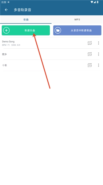 多音轨合成器页激册面,点击新建乐曲。