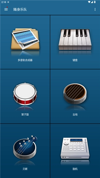 用户们在随身乐队中,能够直接借助首页的“多音轨合成器”,对手机里的音频文件进行合成与调整,也可以直接用手机演奏并录制“架子鼓”“吉他”之类的乐器。