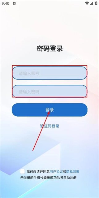 在登录页面输入手机号与密码,勾选相关协议后,点击登录按钮即可完成账号登录流程。