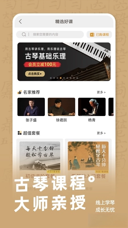 社区互动生态构建:设置“琴友圈”专区,用户能够分享练琴视频、探讨调音技巧、邀约组队参与线下活动。平台会常态化开展“古琴知识竞答”“减字谱转译竞赛”等互动项目,表现突出的内容创作者将被授予“古琴达人”专属认证标识。