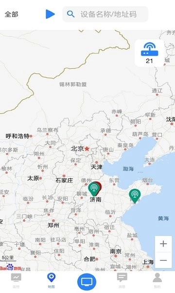 已为用户配备周边地图搜索功能。使用时,先打开地图界面,选定个人所需的搜索范围区域,再输入设备名称或地址码即可启动搜索。
