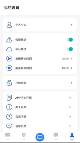 用户可以在环境云控通的“我的设置”里,对告警推送、平台推送、推送开始时间和推送结束时间等各项功能进行设置与使用。