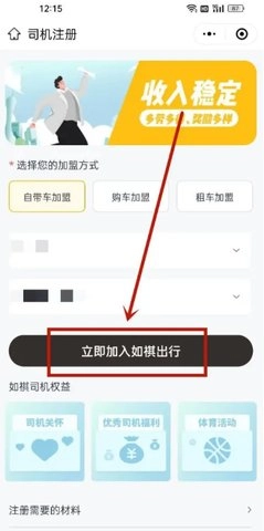 选择加盟方式,点击‘立即加入如祺出行’。