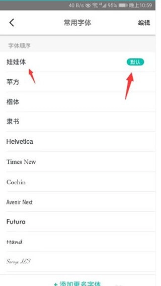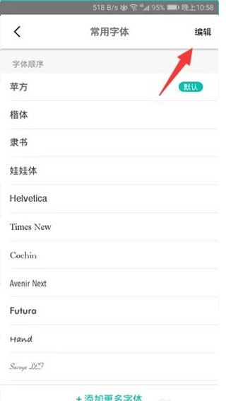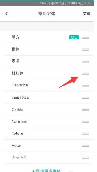 进入编辑页面后,在喜欢的字体后面按住三横杆拖动