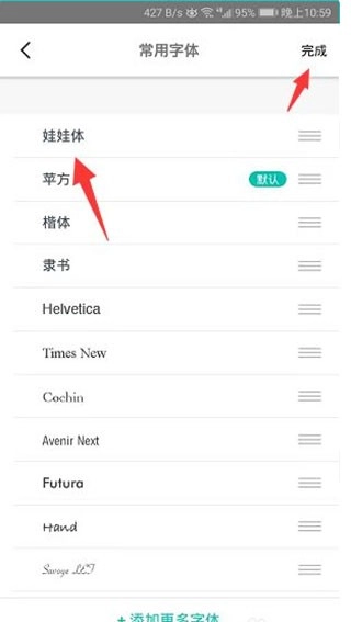 将字体拖到第一,点击右上角完成