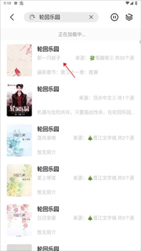 打开书香仓库软件的首页后,任意点击一本小说,就能看到该小说有30个来源。