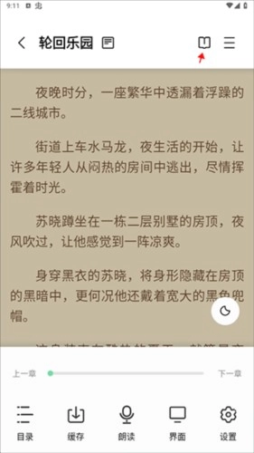 进入阅读页面后,然后点击箭头标记的图标