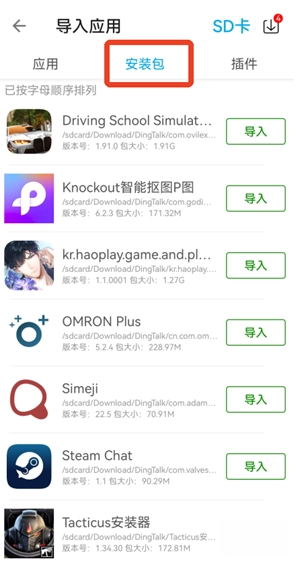 你也可以点击页面上方的第二个【安装包】选项,然后从文件夹中挑选安装包来完成导入操作。