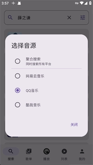 在搜索歌曲之前可以切换不同的音源,这里支持聚合搜索、网易云音乐、QQ音乐、酷我音乐等多个平台的音源,能帮你轻松搜索到全网的音乐资源。