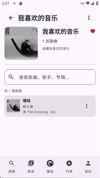 在这个歌单里可以查看已经收藏的歌曲,还能借助搜索框快速找到歌单内的任意一首歌曲。