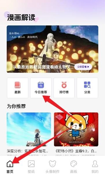 进入首页,可查看今日推荐