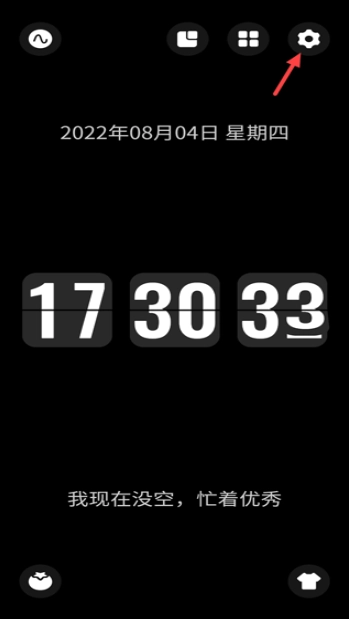 首先打开翻页桌面时钟应用,然后点击软件首页右上角的“设置”按钮。