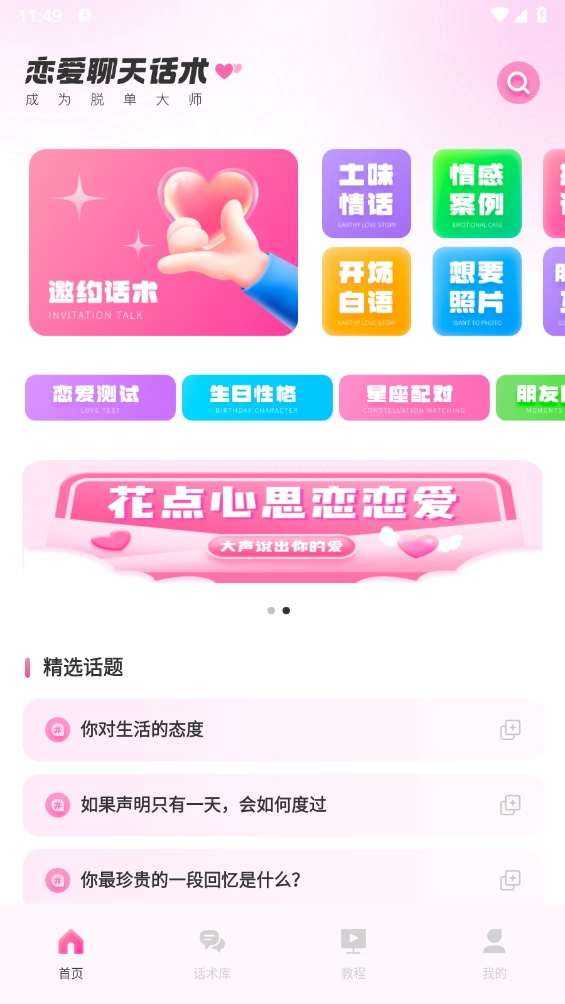 可能包含一个互动社区,用户可以在这里分享自己的恋爱故事和话术使用经验。