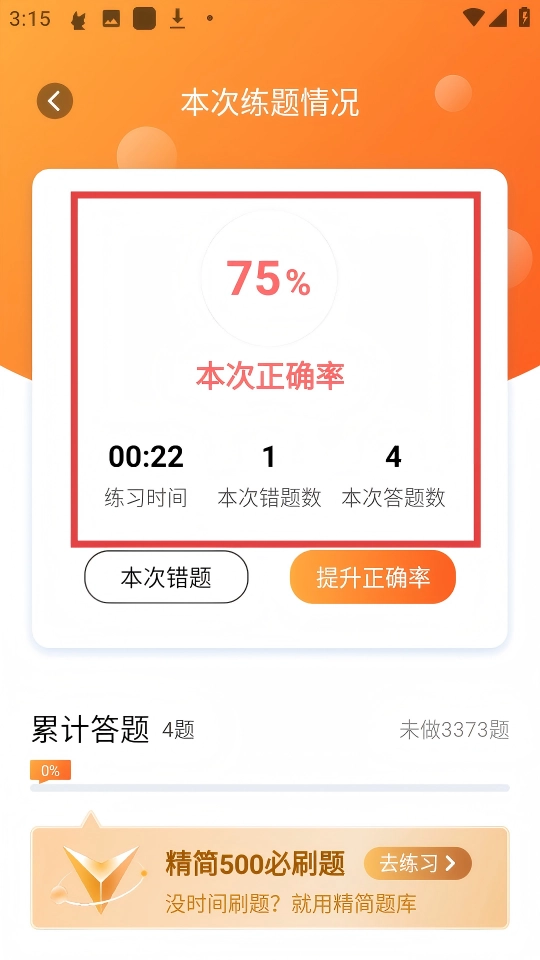 在【答题技巧】页面中点击【练题】选项,即可进入与对应知识点相关的练习界面。