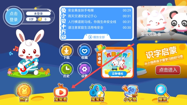 打开兔小贝乐园,点击【宝宝看】。