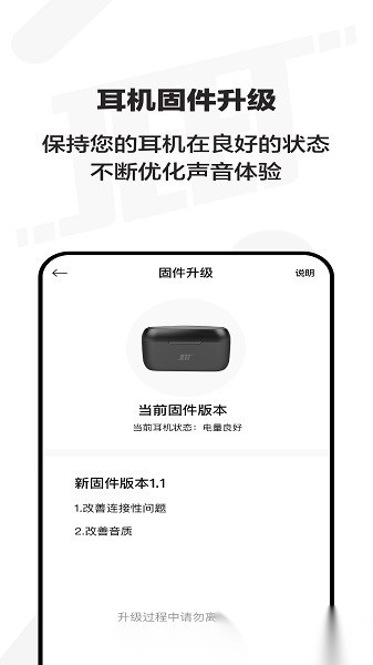 这款应用主要是为JEET系列无线耳机提供软件层面的功能支撑,以此优化整体使用体验;它的核心功能涵盖固件在线升级、EQ音效调节、触控敲击设置等,能有效增强无线耳机在日常使用中的稳定性与可靠性。