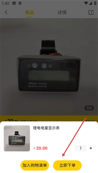 在搜索结果里挑选【锂电电量显示表】这款商品,然后进入该商品的详情页面。