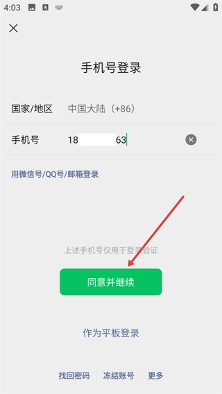 在登录选择界面点击【作为手机使用】这一选项,即可进入手机号登录界面。