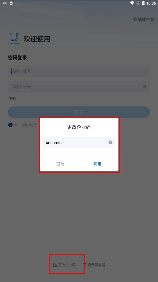 点击【更改企业码】功能按钮,在弹出的窗口里能够修改企业码,点击【确定】功能按钮进行保存。