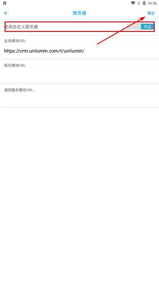 进入服务器设置页面后,你可以开启【使用自定义服务器】功能按钮,设置好相关URL后,点击【确定】功能按钮就能完成保存操作。
