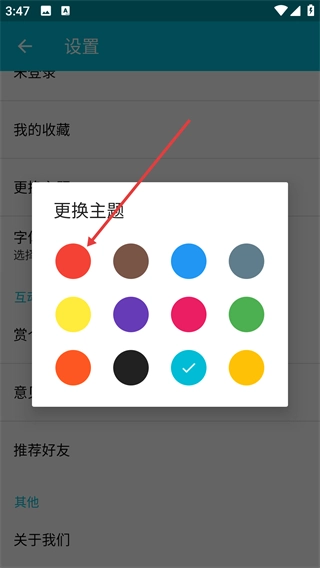 在主题选择弹窗中选择目标主题颜色,如红色。