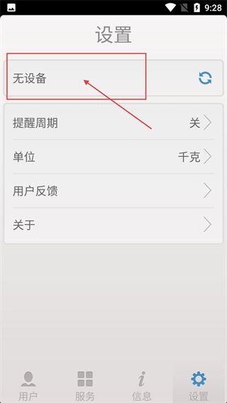 进入设置页面后,要是页面上显示【无设备】,可以点击这个区域右边的刷新按钮,试着连接对应的称重设备。
