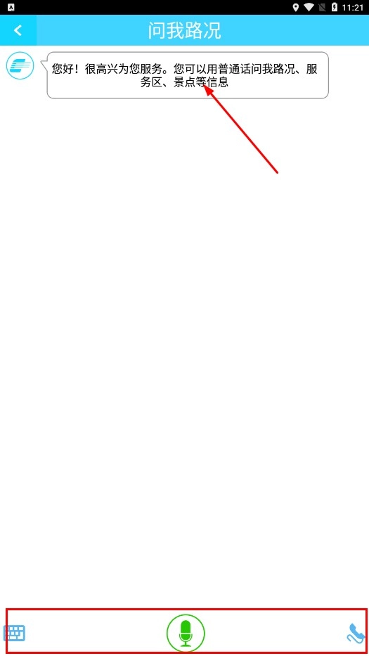 在路况查询页面,您可以通过麦克风语音输入或键盘手动输入的方式获取所需信息,获取信息后,您可以返回首页继续使用其他功能。