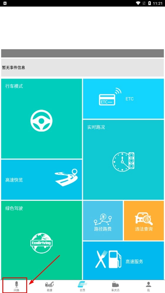 点击底部【问路-功能按钮】,进入问我路况页面。