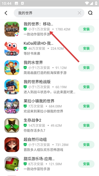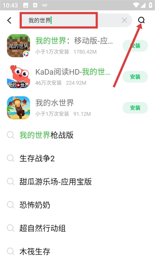 在搜索框中输入【我的世界】,接着点击页面右上角的【搜索】按钮,就能得到相关的游戏列表。