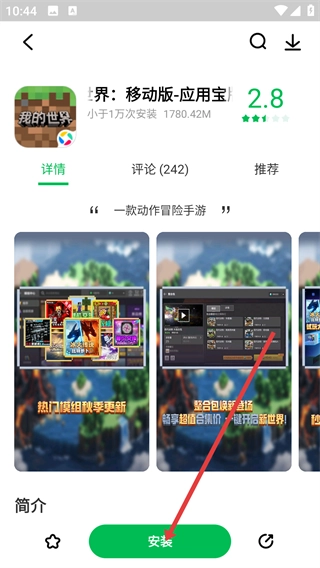 在游戏列表里,找到并点击【我的世界:移动版-应用宝】这一项,就能进入游戏的详情页面。