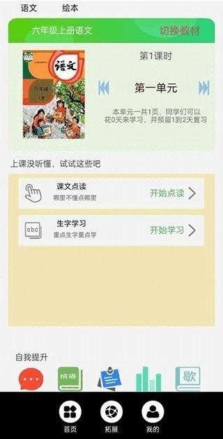 六年级语文上册配备了和教材进度同步的课文朗读、解析以及背诵功能,助力学生打牢语文基础知识。
