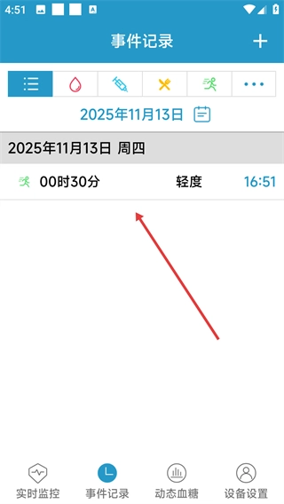 在事件记录页面,点击右上角的【+】按钮,即可进入添加事件的页面。