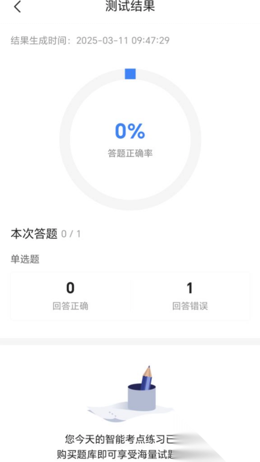 当你把相关知识点学习得差不多了,就可以自己进行考试来测试一下水平。每个题目在答错后都会附上答案详情,帮助你在每次考试中都能掌握更多知识点!