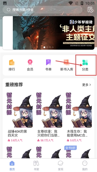 可以通过首页分类栏按类型筛选内容,也能在搜索框输入书名或作者名精准查找,再搭配热门推荐发现优质新书,这样就能高效找到自己喜欢的内容。