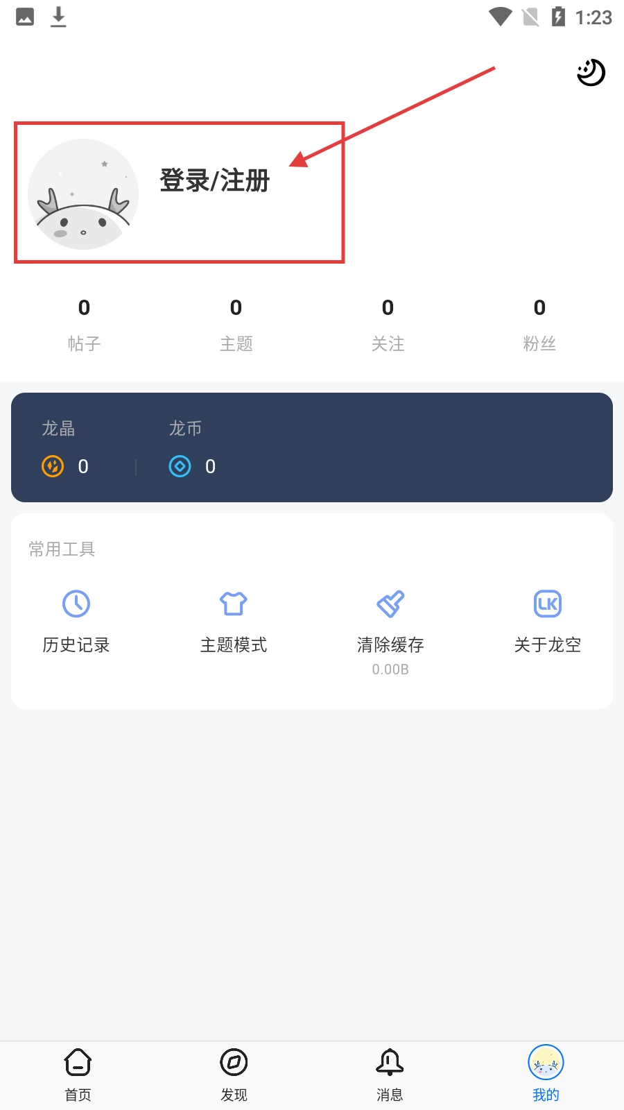 进入龙空后,点击右下角的【我的】按钮,即可进入个人中心页面。