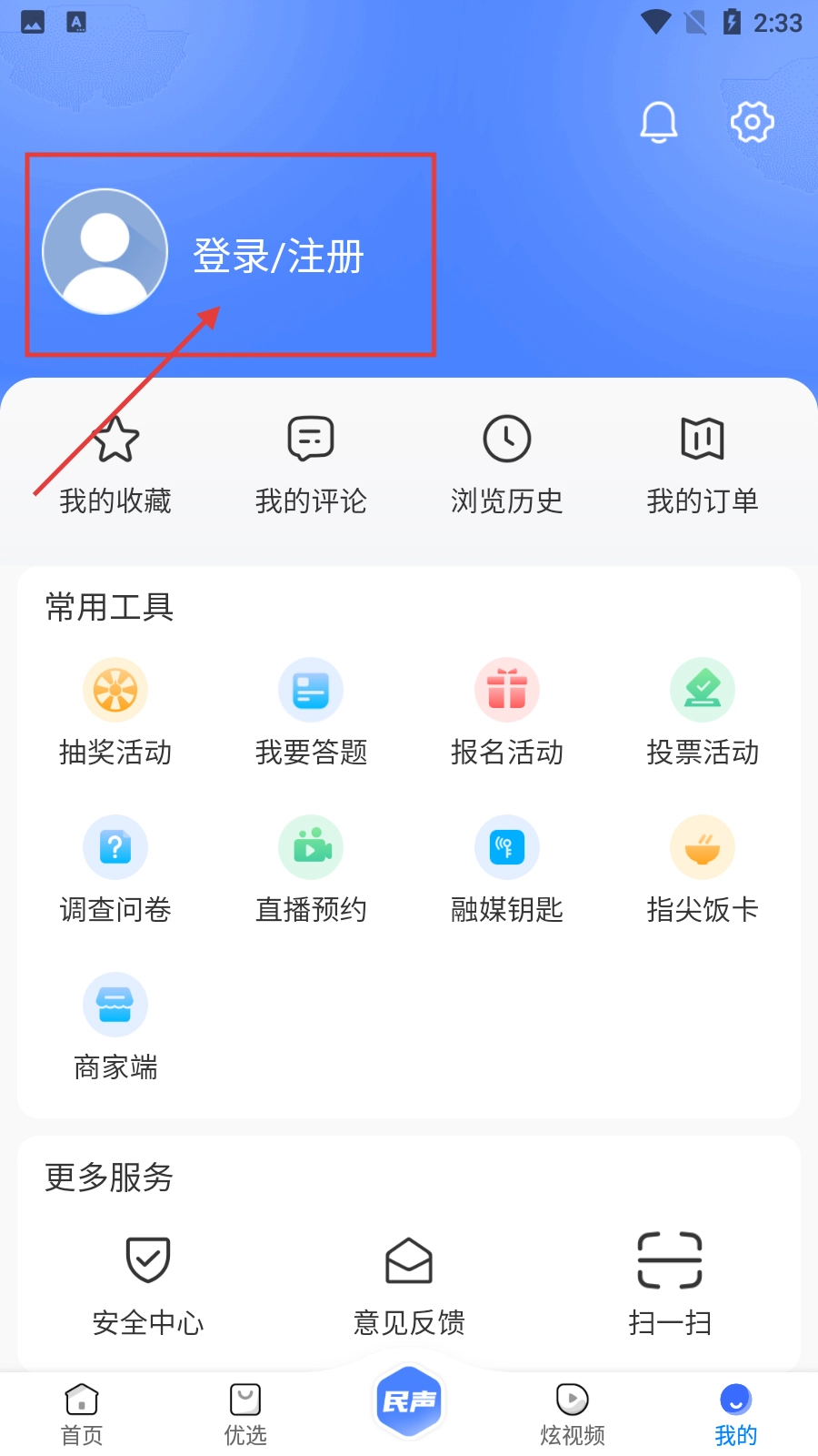 在个人中心页面,找到并点击【登录/注册】的入口,就能进入登录界面,此时可以选择通过验证码登录,也可以选择使用账号密码登录。