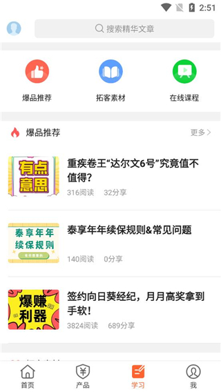 3、在学习界面,有海量保险相关的课程以及素材可以学习