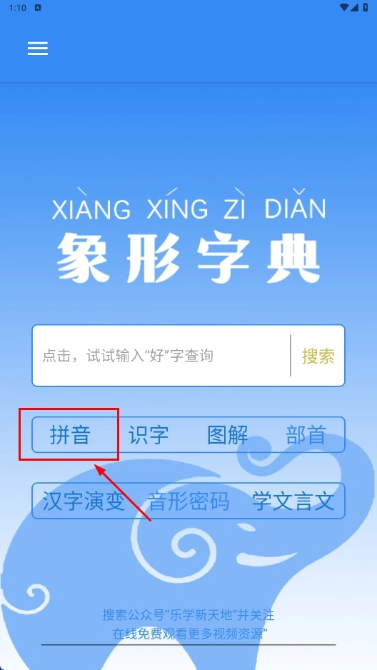 点击【拼音-功能标签】,进入拼音分类页面。