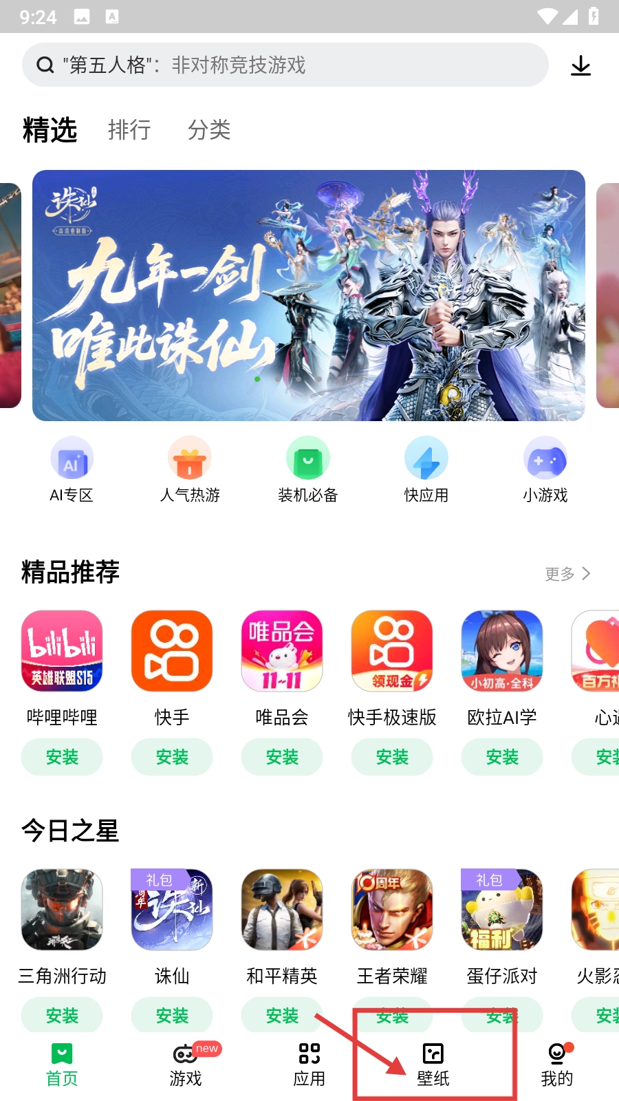 打开软件后,点击底部的【壁纸】选项,即可进入壁纸页面。